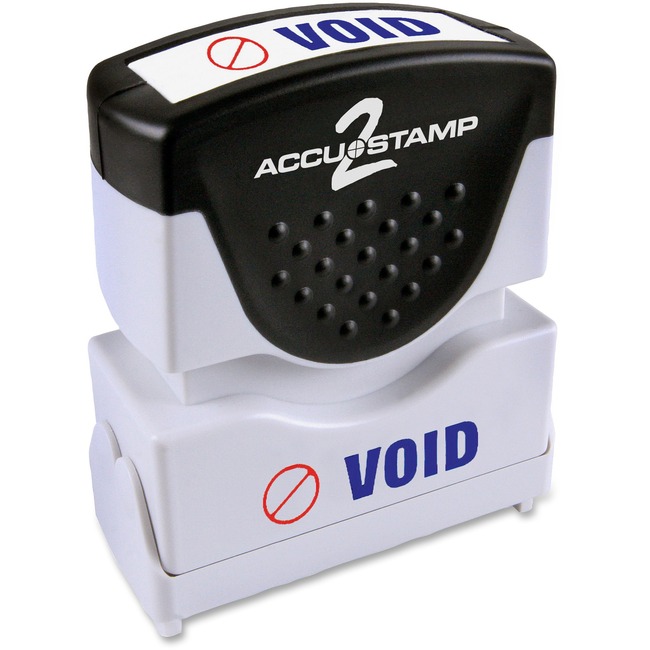 Accustamp 2 Shutter Stamp features Microban and a unique soft-touch grip for easy stamping. Microban antimicrobial protection works continuously to inhibit the growth of microbes, such as stain-causing, odor-causing bacteria. The textured grip on the ergonomically designed handle is made of rubber for your comfort. The frame is made of a sturdy plastic. To protect your stamp, a unique dust cover automatically opens and closes while stamping. For easy identification of your two-color stamp, the frame also includes dual-title labeling that reads VOID in blue with a red icon on the front and top. Shutter stamp makes thousands of impressions, and is re-inkable for thousands more. The stamp makes an average of 20,000 impressions. Actual stamp impression is 1/2 x 1-5/8.